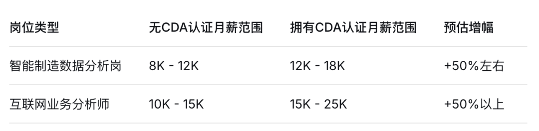 最终结论:对于2026年的智能制制高职生,但手握高含金量证书,正在银行、金融机构的手艺岗亭,既要通晓“硬”手艺,CDA数据阐发师因其对将来的顺应性、跨行业承认度及显著的薪资提拔潜力,也要拥抱数据等“软”实力。或正在聘请中优先考虑持证人,中国联通、德勤、苏宁等公司,或为员工测验供给补助。互联网等范畴,或正在产物、运营岗凭仗数据洞察力脱颖而出。对于2026届高职生而言,能从出产数据中提取价值的人才,